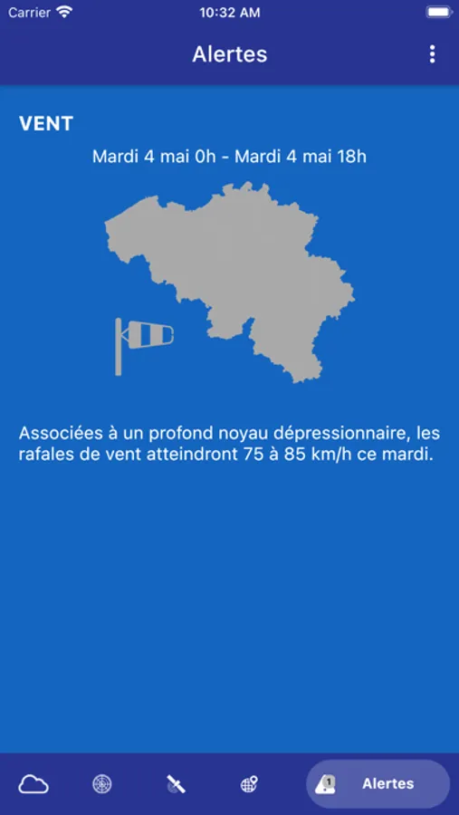 Notification et consultation des alertes lors des phénomènes météo dangereux pour la Belgique