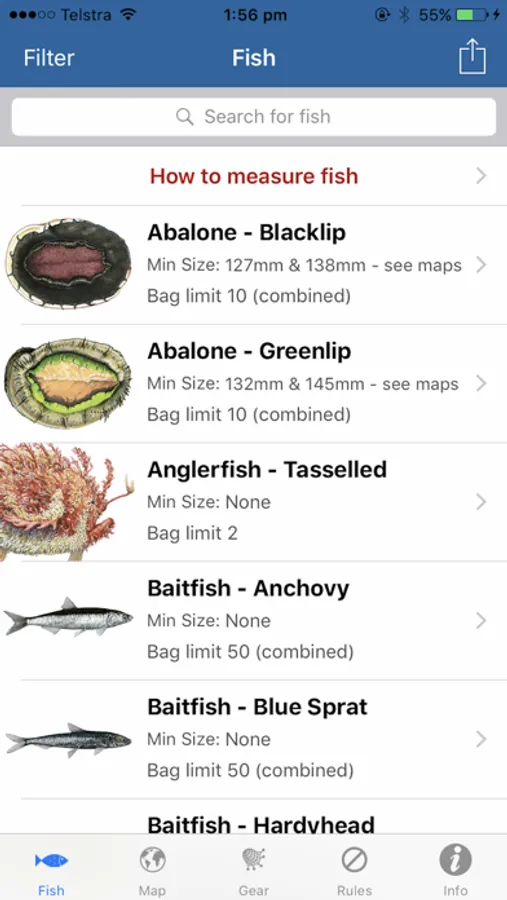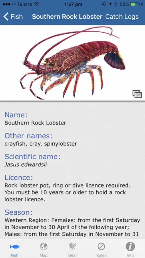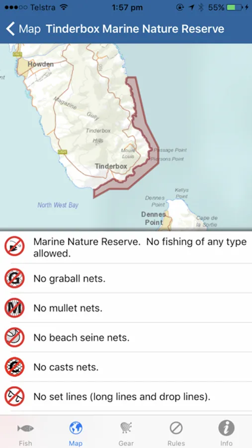 The app has up-to-date size and bag limits, fishing rules, seasons and area restrictions. Get fishing information for over 135 Tassie fish, mark your favourite fishing spots and find the nearest boat ramp.