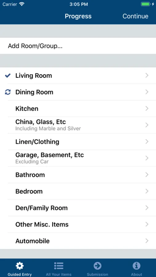 The PG Inventory App offers a guided walk-through of each room of your house, providing you the opportunity to add miscellaneous items and rooms, including the ability to take pictures.