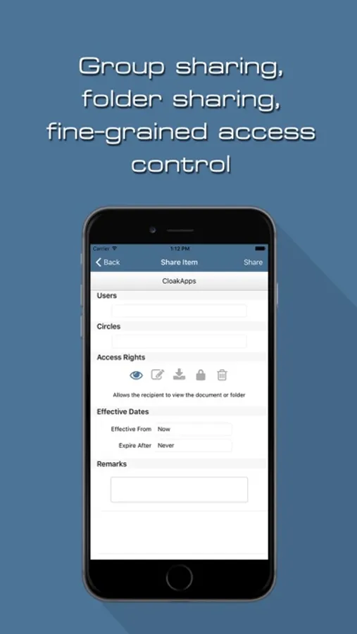 1. Digital rights management. Share text / markdown, pdf and images with read-only access to specific recipients. Documents and folders can be shared to individual users or hierarchical user groups, with fine-grained access rights.