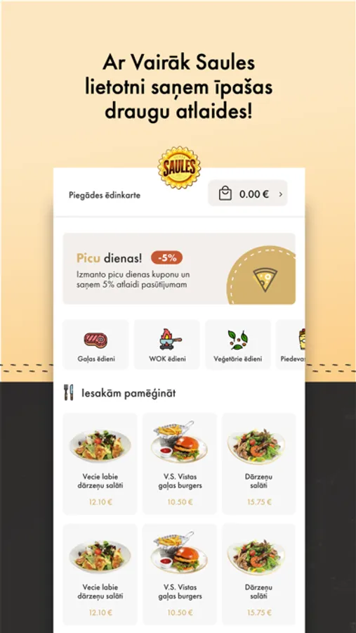 Ar šo aplikāciju Jūs variet pasūtīt savus iemīļotākos ēdienus no Vēl Vairāk Saules. Apskatiet ēdienkarti, pievienojiet ēdienus grozā, aizpildiet pasūtījuma informāciju un spiediet "Gatavs" un mūsu operatori ar Jums sazināsies.