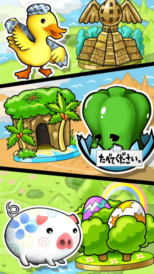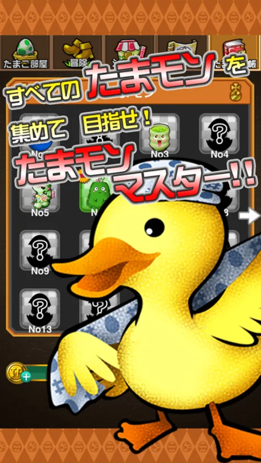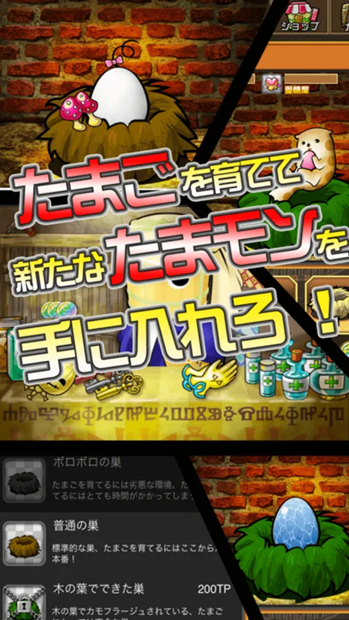 冒険で手に入れた「たまご」に愛情を与えて育てると「たまモン」が産まれるよ。