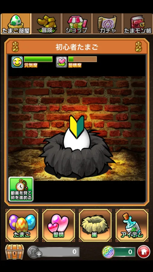 「初心者たまご」は比較的愛情度がたまりやすく、すぐに孵化します。