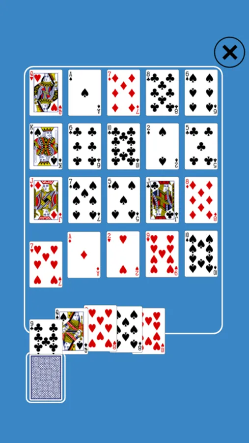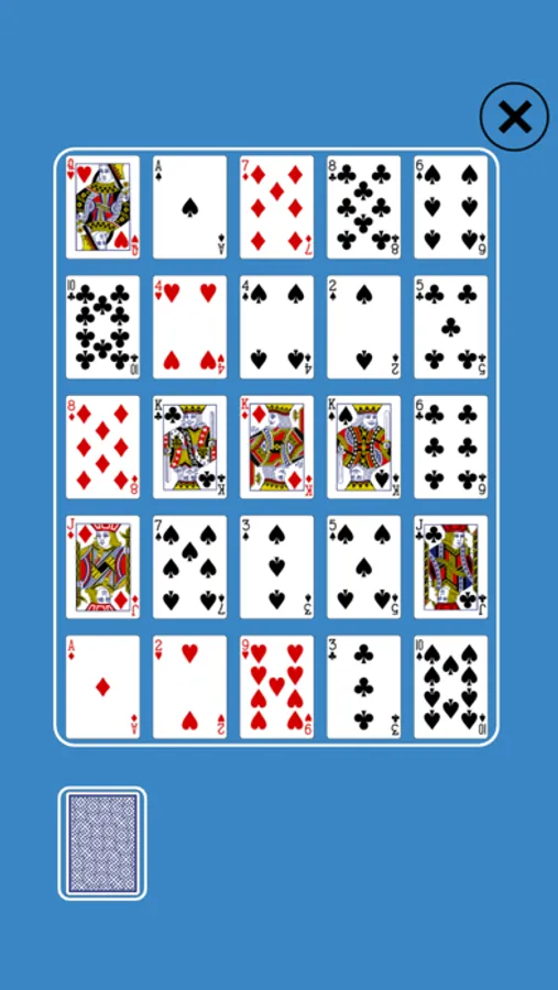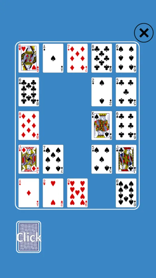 Two cards can be removed if they are of the same rank and adjacent to each other vertically,horizontally or diagonally.