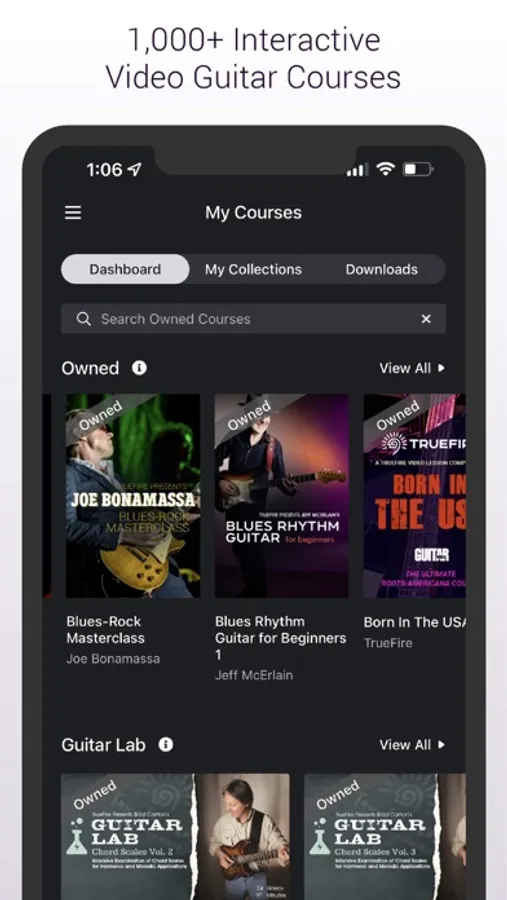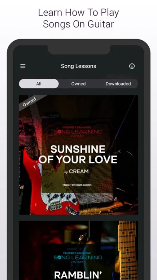 Play guitar or want to learn how to play guitar? Download TrueFire’s app to your iOS device for access to over 50,000 video guitar lessons, 30,000 guitar tabs, and 20,000 jam tracks at your fingertips. TrueFire’s library of 1,000+ guitar courses covers all levels, techniques, and styles of blues guitar, jazz guitar, rock guitar, country guitar, acoustic guitar, fingerstyle guitar, and other guitar styles.