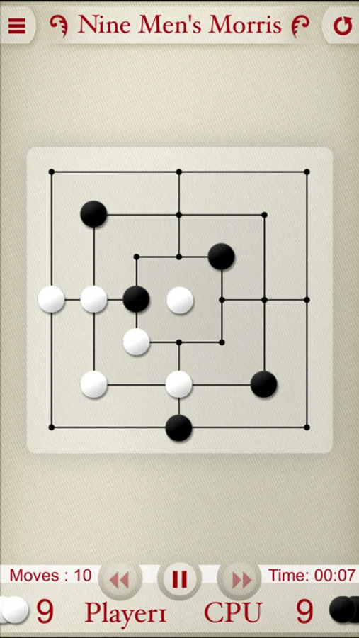 Nine Men`s Morris has 2 simple and easy to use phases.