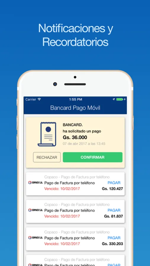 Bancard Pago Móvil es un servicio gratuito que te ofrece la posibilidad de pagar facturas de los principales servicios públicos y privados de Paraguay, las 24 hs. a través de Internet.