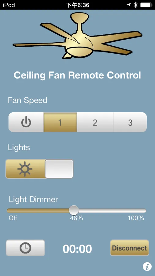 Turn your Bluetooth Device into a convenient remote control for your ceiling fan. The “Fan Remote” app when paired with Home Depot’s Universal Bluetooth Remote can operate your fan by turning on/off, change speeds to high, medium, low, and control your light kit including dimming feature. Convenience is at your fingertips with the Bluetooth Fan Remote.