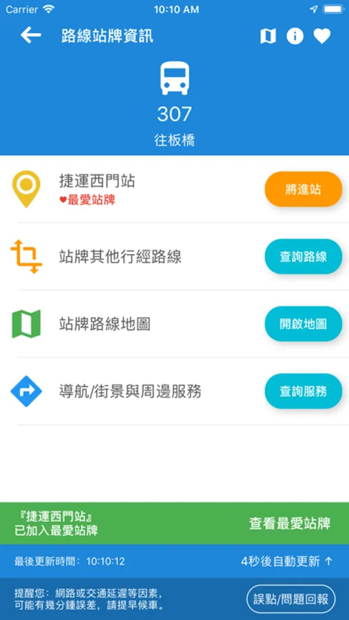 最愛站牌 - 常搭站牌加入最愛下次查詢省時快速!