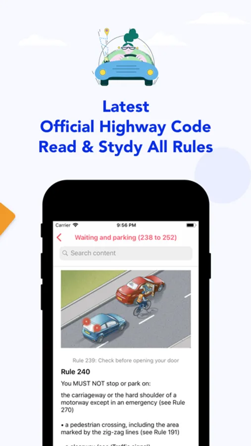 You get learning material kit to help you get prepared for the Theory Test! Find set of rules from the latest UK Highway Code for the effective learning and better results.