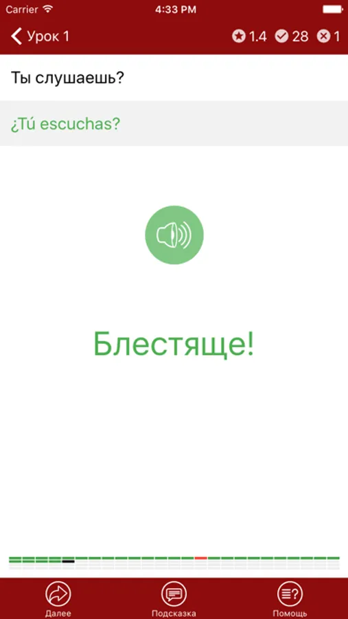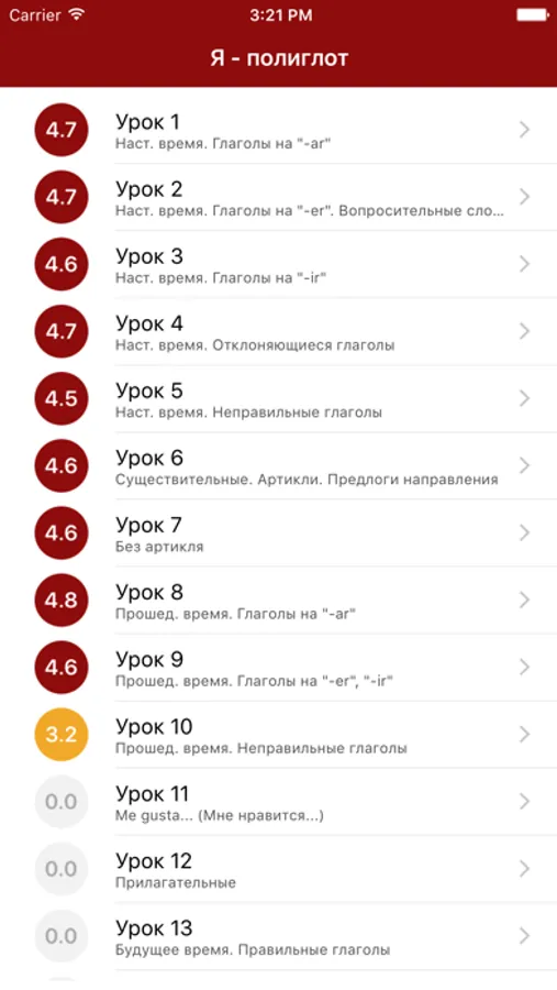 Доступна синхронизация результатов прохождения занятий через iCloud.