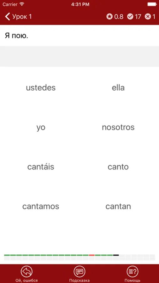 Из слов на экране вам нужно составить перевод на испанском языке.
