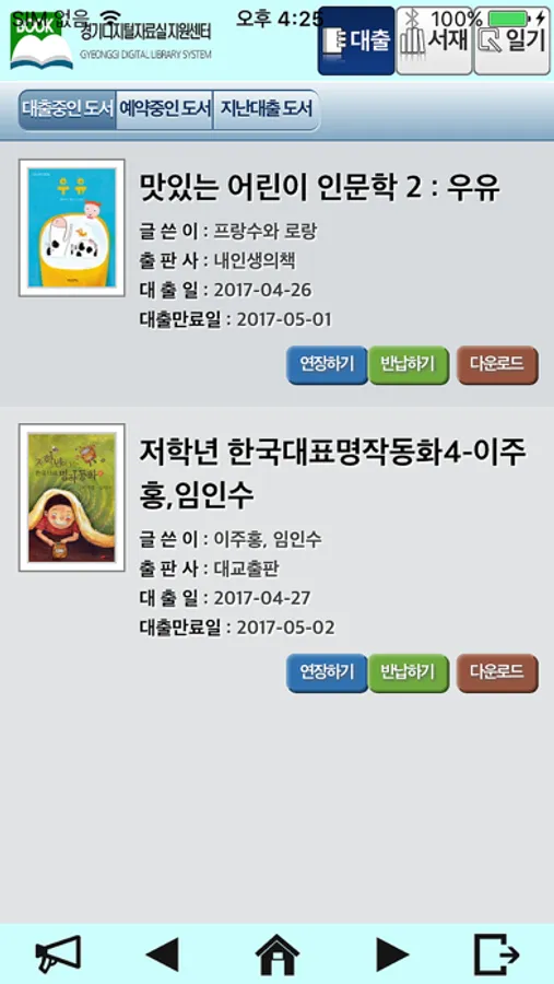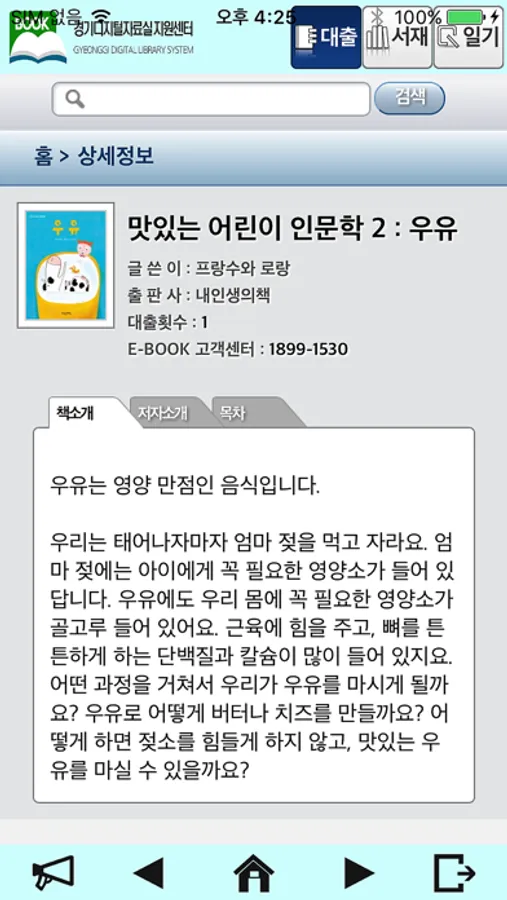 경기디지털자료실 지원센터 도서관 대출회원으로 인증한 이용자를 대상으로 전자책 서비스를 제공합니다. 전자책을 검색, 대출하여 스마트폰을 통하여 언제 어디서든지 책읽기가 가능합니다.
