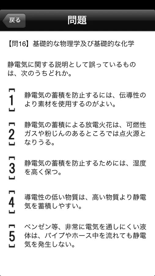 3. 問題が表示されるので、題意に沿う選択肢をタップします。なお、正しい選択肢を選ぶ問題と、誤った選択肢を選ぶ問題があるので、問題をよく確認して回答します。