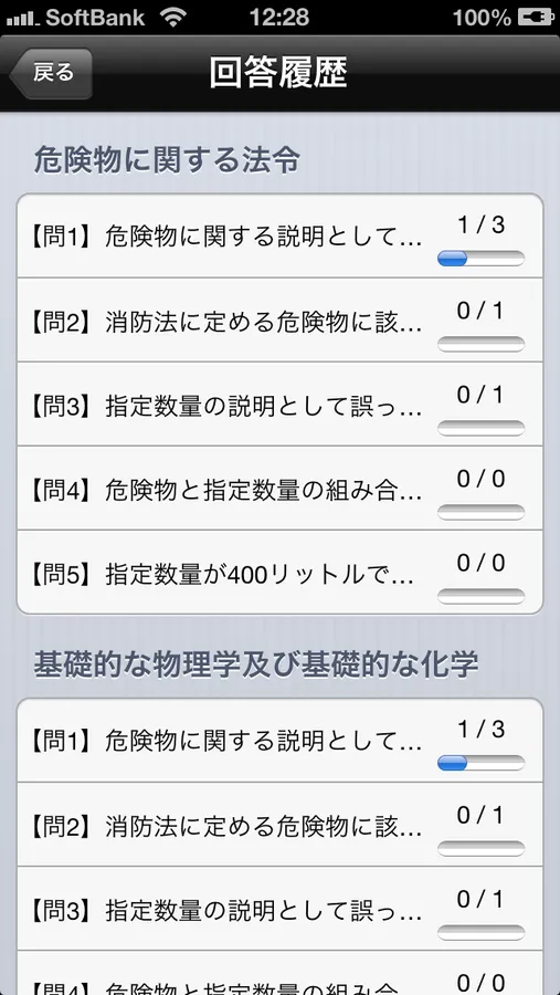 解答履歴が記録されるので、正解率の低い問題を選び重点的な復習が可能です。