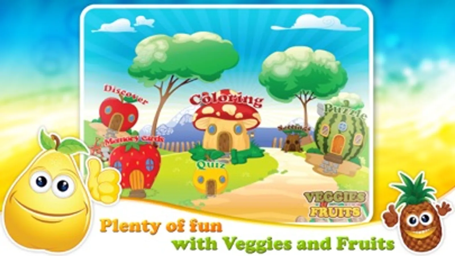 - The Quiz game helps your child to test his knowledge about associating the names to Vegetables and Fruits.