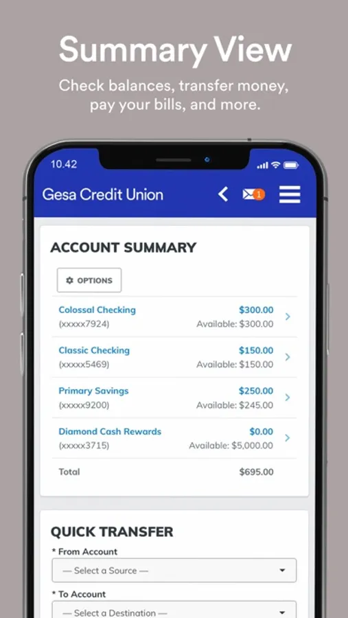 Your banking on your schedule, all from the palm of your hand! Move or send money between your accounts or to someone else. Deposit your checks, pay your bills, apply for loans and credit cards, open a new account - all without having to make a trip. Need your balances quickly? Set up Fast Balances to get account snapshots without even logging in. All of this and so much more!