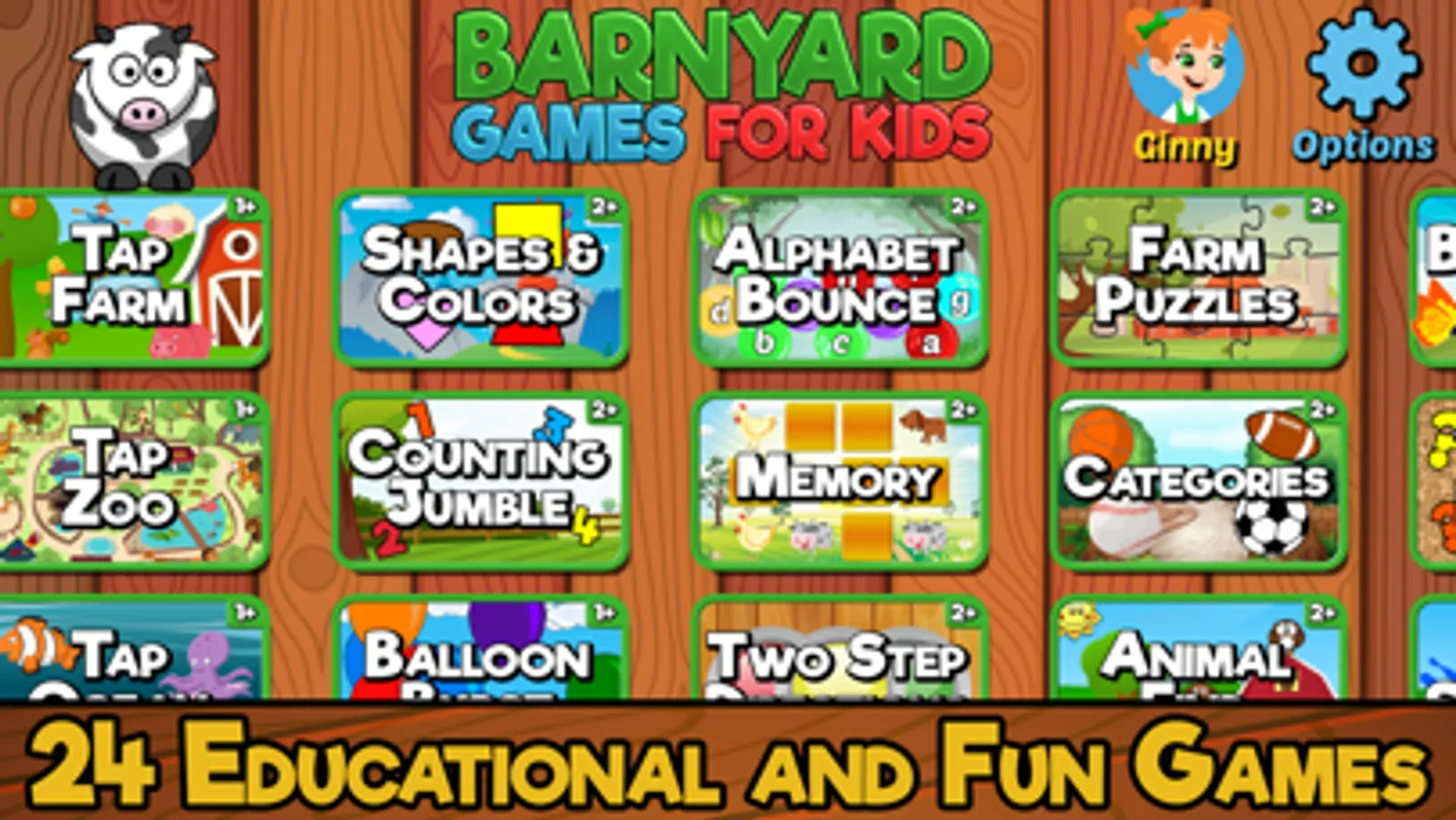 24 games in one! Colorful graphics, animal sound effects, helpful voice narrating, and lots of fun! Have your kids learn counting, shapes, colors, and the alphabet while being entertained! Perfect for preschool and kindergarten ages.