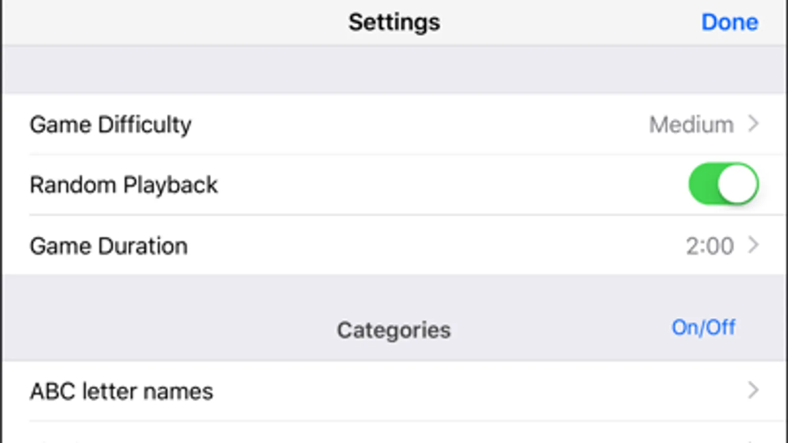 • Want to work on just a few letters? No problem… head to the settings page to turn entire categories or individual letters on and off