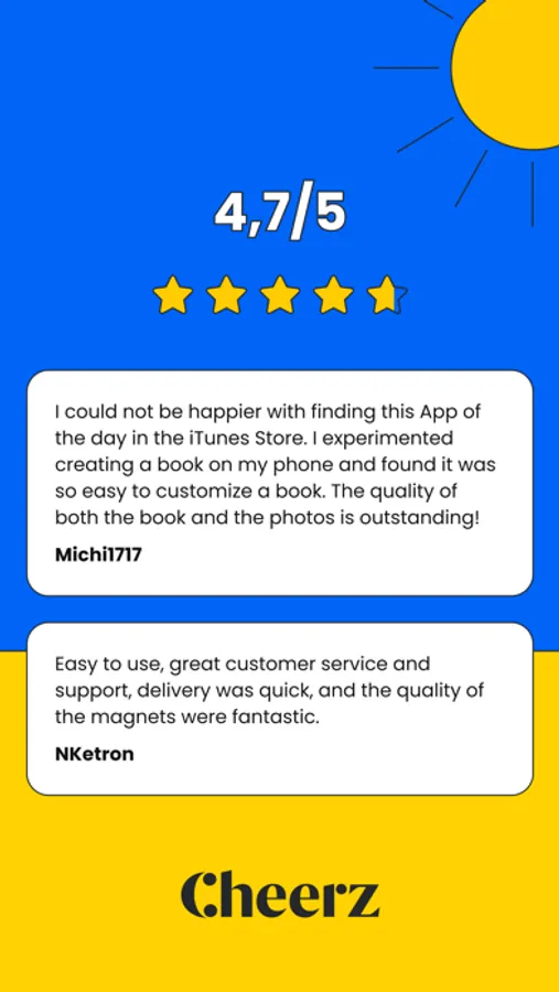 Cheerz prints the memories of over 4 million customers worldwide ! With 97% satisfaction, that's a lot of smiles, right ?