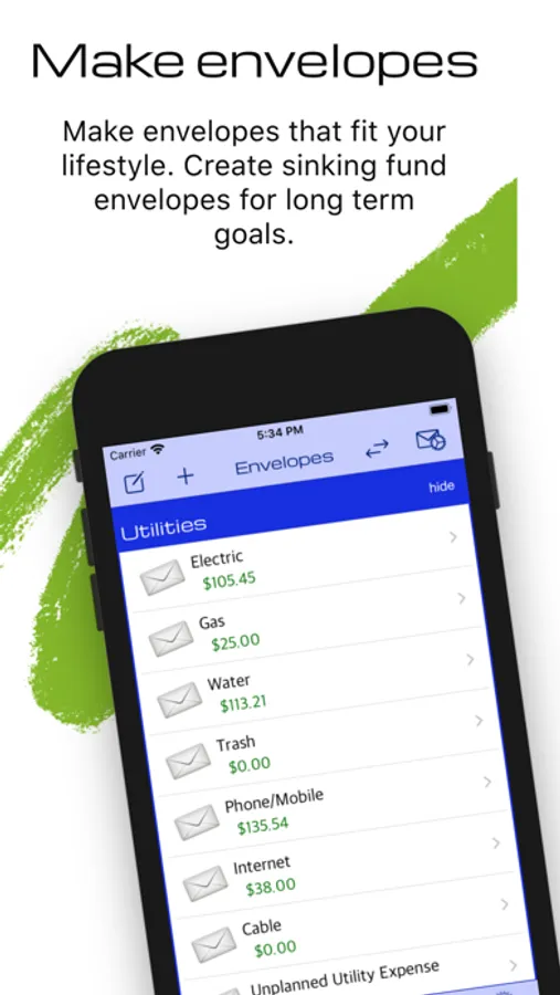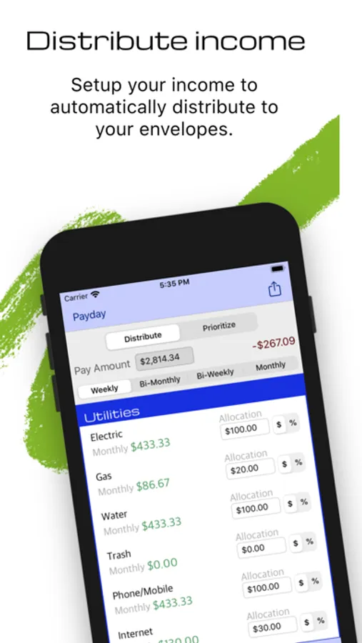 - Easily distributing your income into envelopes.