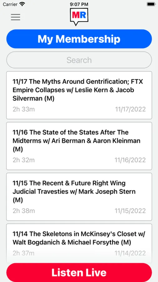 + Easy live audio and video streaming of the Monday through Friday live show at 12PM ET to listen or watch anywhere.