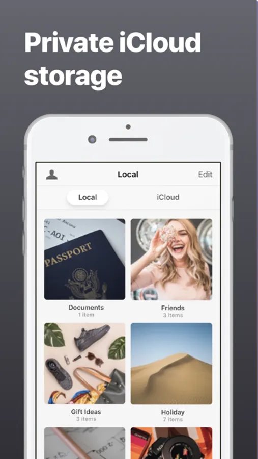 - Use the camera to take private photos and videos from within the app.