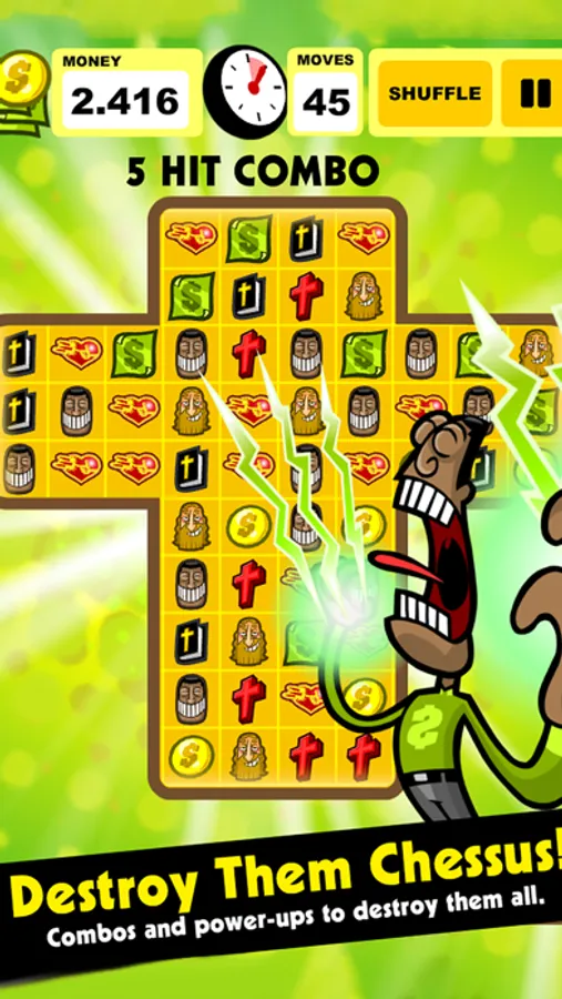 Use combos and power-ups to destroy the blocks and donate as much as possible! A big surprise awaits the blessed to finish the game! in the name of Chessus.
