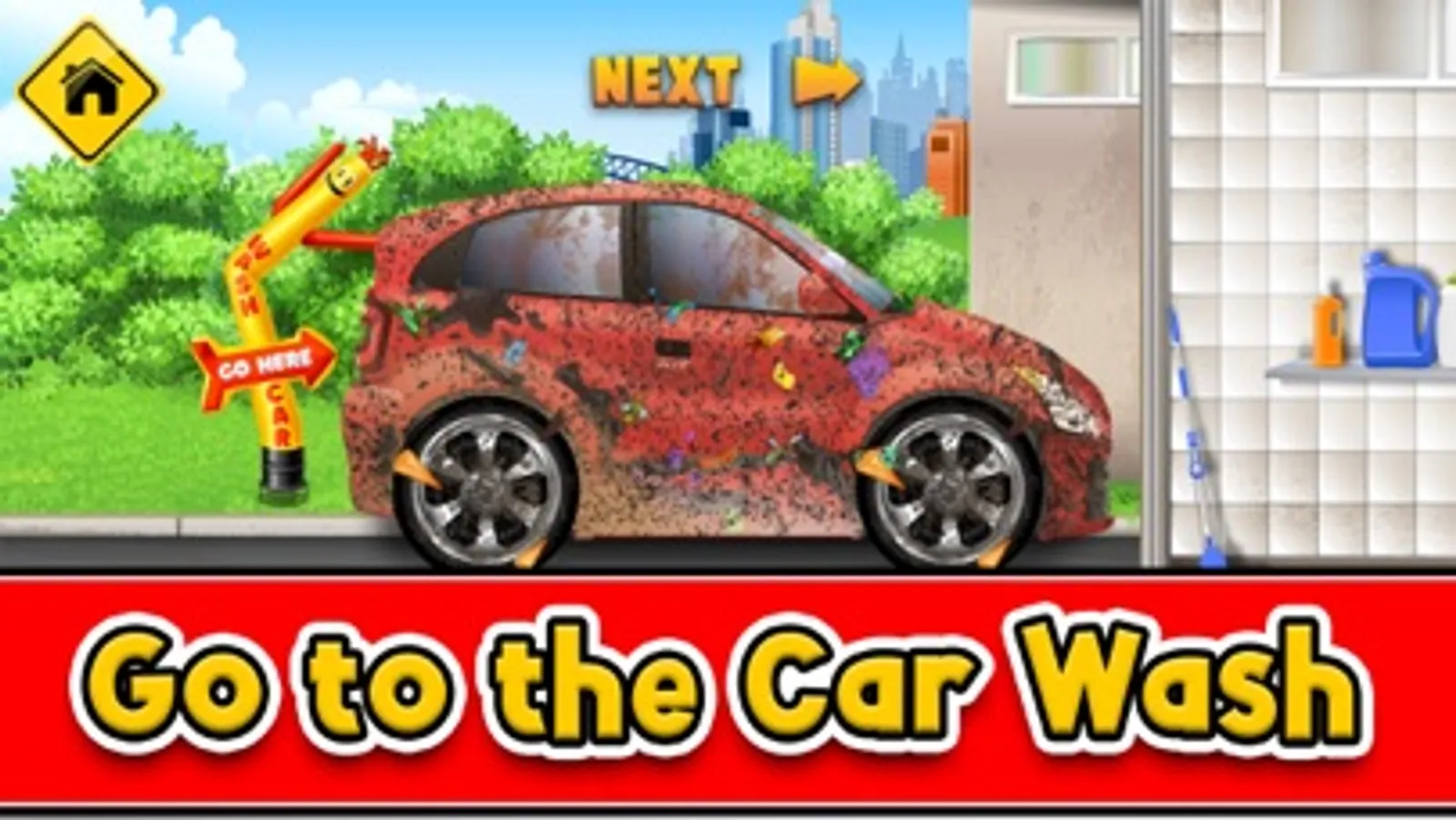 Tap NEXT→ and Start by driving up to the car wash station! Beep beep!