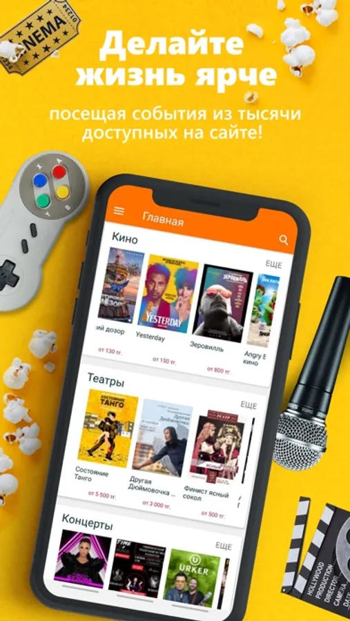 Здесь Вы можете приобрести билеты на любые интересующие Вас мероприятия, от кино до концертов, от бассейнов до мастер-классов. К нашей системе подключено более 40 кинотеатров, включая сеть кинотеатров Chaplin, Cinemax, 70 театров, включая кпупнейшие: Астана Опера, Астана Балет, ГАТОБ им.Абая, театр драмы им. Лермонтова, Спортивные клубы: ХК Барыс, ХК Сарыарка,ХК Торпедо, ФК Кайрат,ФК Астана,ФК Актобе и другие различные места проведения развлекательнвх мероприятий. Просто выберите места, оплатите удобным для Вас способом - и вперед за эмоциями!
