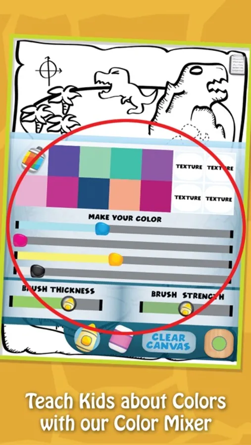 Featuring our new ‘Brush Texture’, kids can now use photos from your device Camera or Photo Album to create special textured brush strokes. See how kids create wonderful works of art and colorings.
