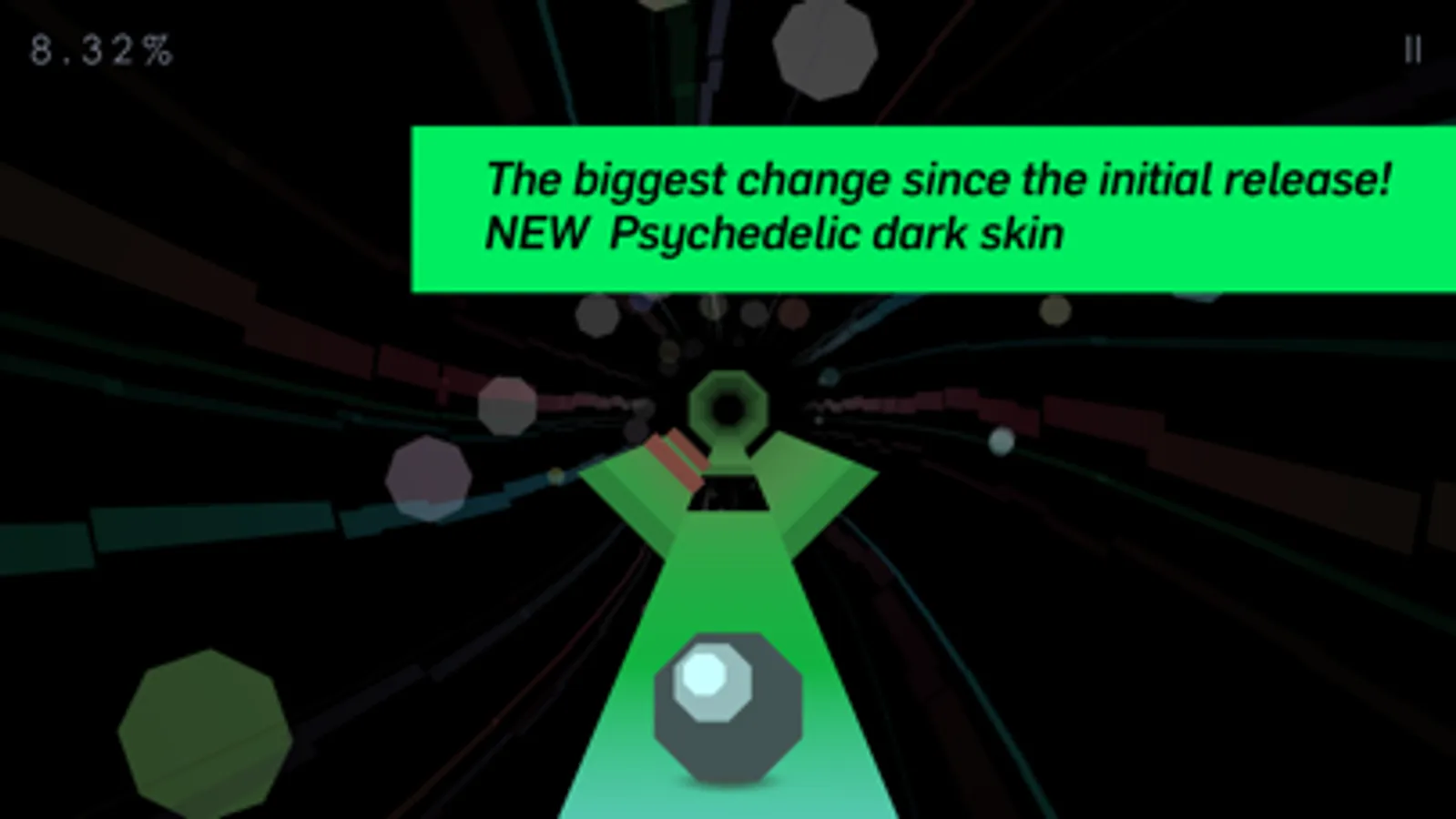 Octagon is a minimal arcade game where you have to move fast or be left behind. As the floor moves beneath you, spin your world around to dodge speed bumps. Flip upside-down to avoid holes, surf on top of the Octagon—whatever you can do to survive the mad race through this trippy 8-sided tunnel. An energizing soundtrack by Sqeepo and psychedelic color bursts keep you in the zone on your race to the finish. But with each round over after just 60 seconds, only super-fast reflexes will beat this very challenging game.