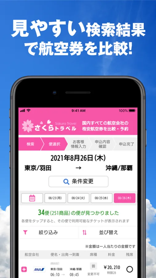 格安航空券(国内)の予約は「さくらトラベル」国内線すべての空席情報や価格を一覧で