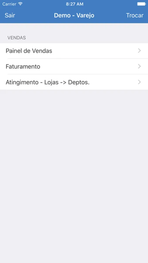 Os valores das screenshots são fictícios apenas para a versão demo, que pode ser autenticada com os seguintes campos: