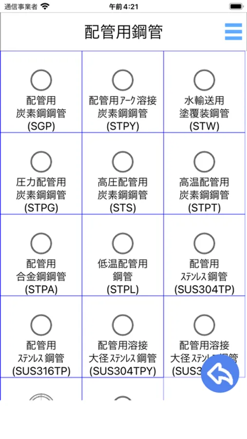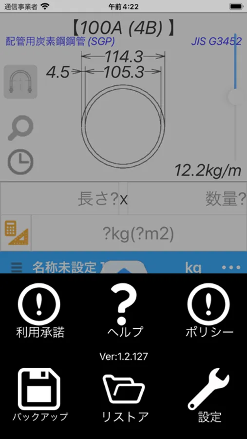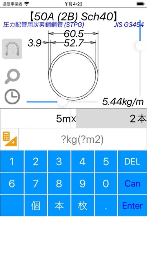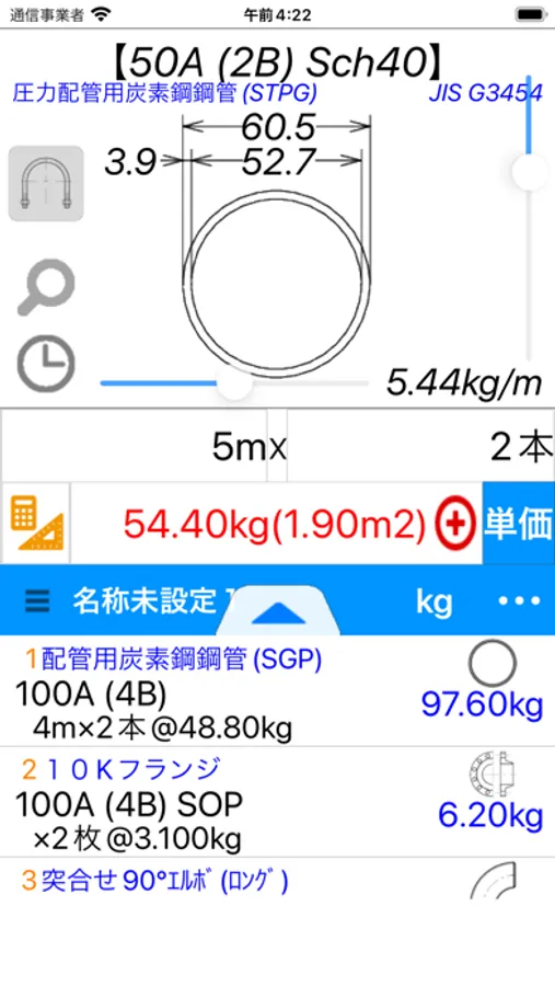 配管(鋼管)、鋼製フランジ、鋼管継手の寸法表示及び重量kg(表面積m2)を計算するアプリケーションです。