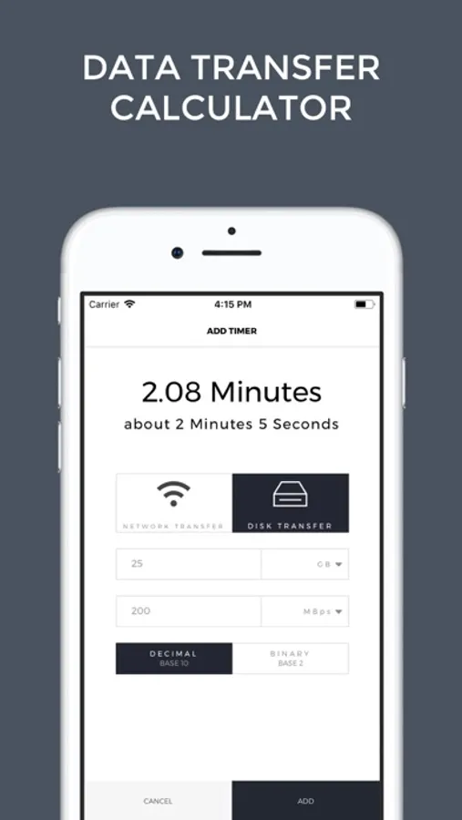 Enter the amount of data — the transfer rate — and Data Transfer Calculator will automatically calculate the transfer time. Choose between Base 2 and Base 10 units to ensure accurate results specific to your operating system.