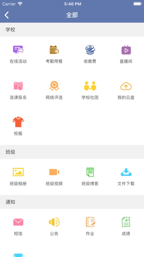 通知:向全校或全班的教师、家长、学生及群组发布各种信息,如公告、作业、成绩、光荣榜等。