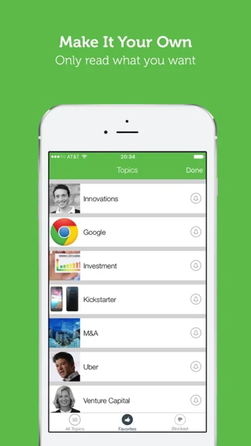 - Your very own news feed - choose the topics you want to follow, the topics you want blocked, and the topics for notifications