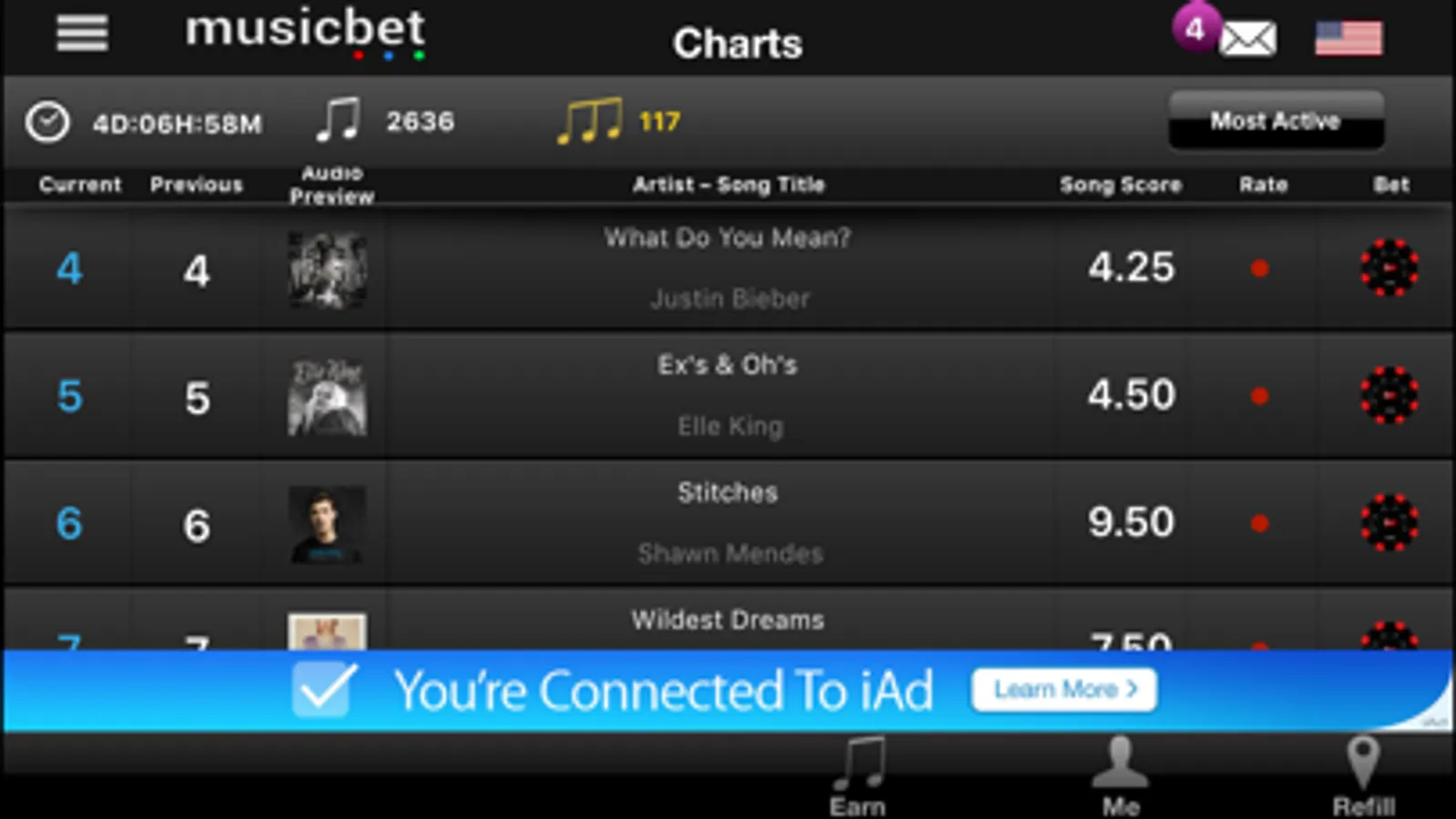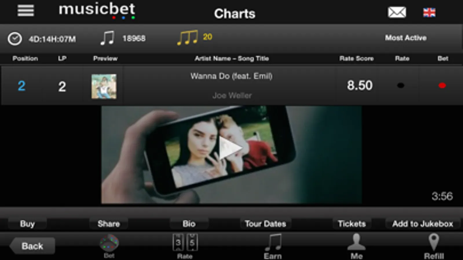 You can earn free virtual currency by rating artist and their songs, watch a video ad, like us on Facebook or recommend a friend. You can use your earned currency to place bets and maximise your earnings.