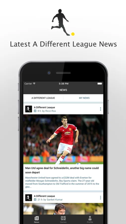 In addition to all of the usual A Different League content, we have added a fantastic range of social features thanks to our friends at fanatix. With A Different League, you can keep track of all of your favourite teams across the world so you do not miss any news, views or live action.