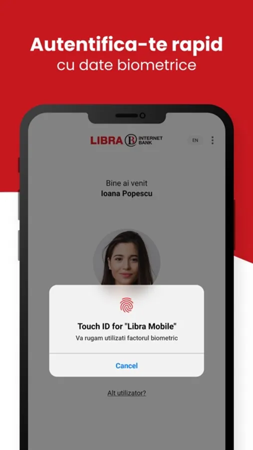 Aplicatia Libra Mobile Banking permite autentificare biometrica sau cu PIN si include o lista extinsa de functionalitati necesare pentru gestionarea propriului cont bancar, ca de exemplu: