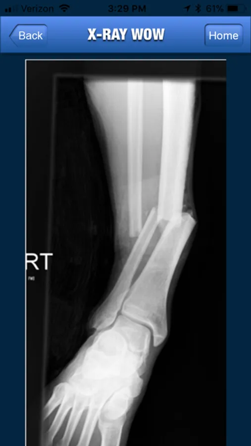 A collection of authentic x-ray images of 20 patients who have experienced serious trauma or unusual surgical procedures. More than 55 x-ray images are included many pointing out the pathology using arrows and lines. The images can be pinch-zoomed.
