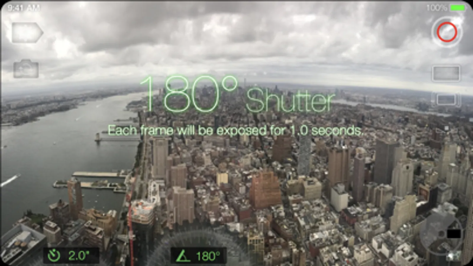 ● Control of the amount of motion blur in your time lapse by adjusting the shutter angle to create light trails and silky smooth motion.