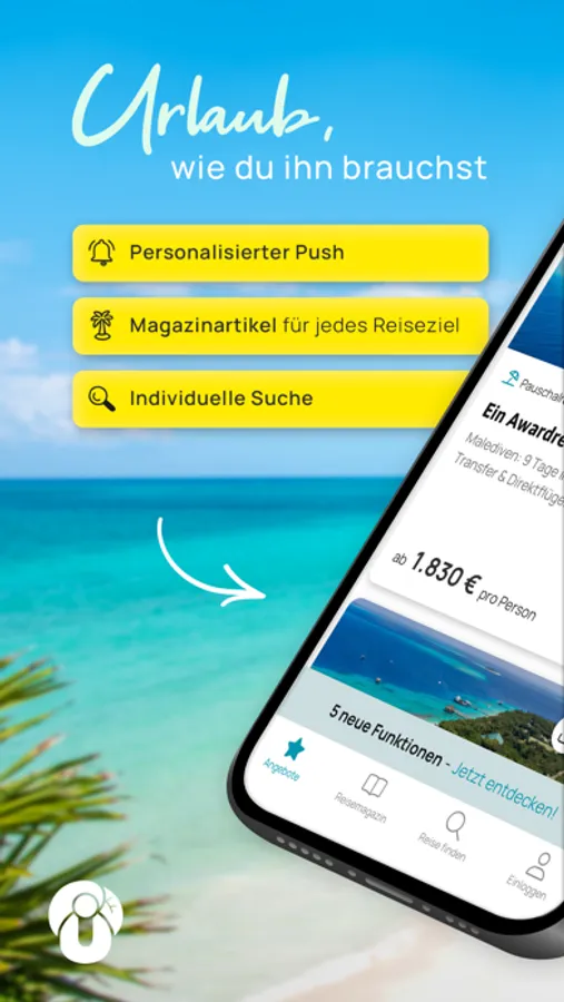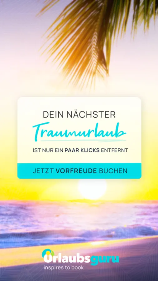 Über 1 Mio. Downloads & eine begeisterte Travel-Community zeigen, dass es mit der Urlaubsguru-App super einfach ist, Urlaub zu buchen. Ob Strandurlaub, Kurztrips, Fernreisen, All Inclusive Urlaub oder Rundreisen – Urlaubsguru ist dein Begleiter auf dem Weg zum nächsten Traumurlaub. Dank der praktischen Reise-App sind die besten Reiseangebote nur ein paar Klicks von dir entfernt.