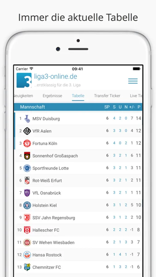 Die offizielle iPhone-App von liga3-online.de informiert Euch rund um die Uhr kostenlos mit allen wichtigen Infos zur 3. Liga.