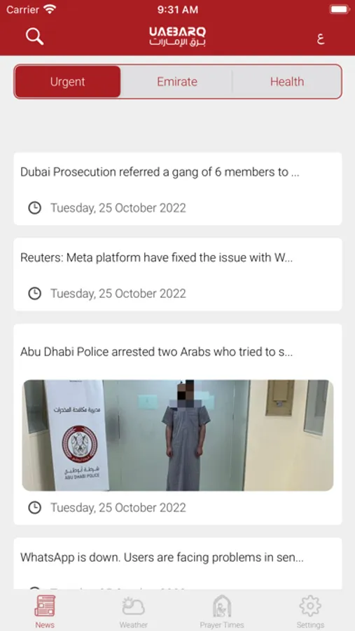 UAE Barq application offers the latest UAE local and international news, Prayer times and health alerts and tips in a new and distinctive design as well as weather conditions service and forecast based on your location in the emirates.