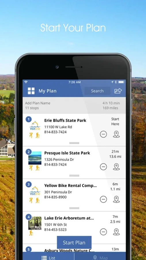 • Share events, places, and fun adventures with friends so they can join you in Erie!