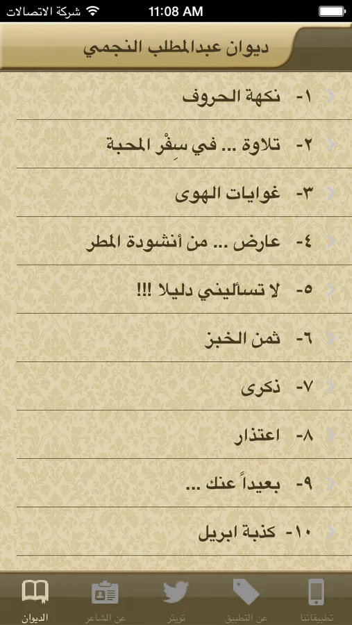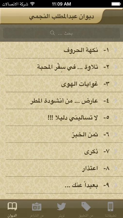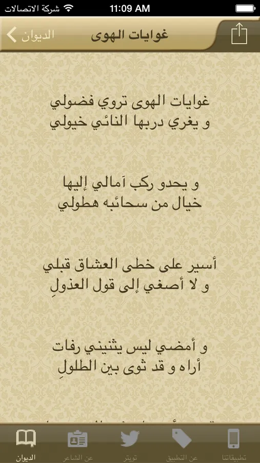 ـ تصفح صفحة الشاعر على تويتر مباشرة من التطبيق ـ