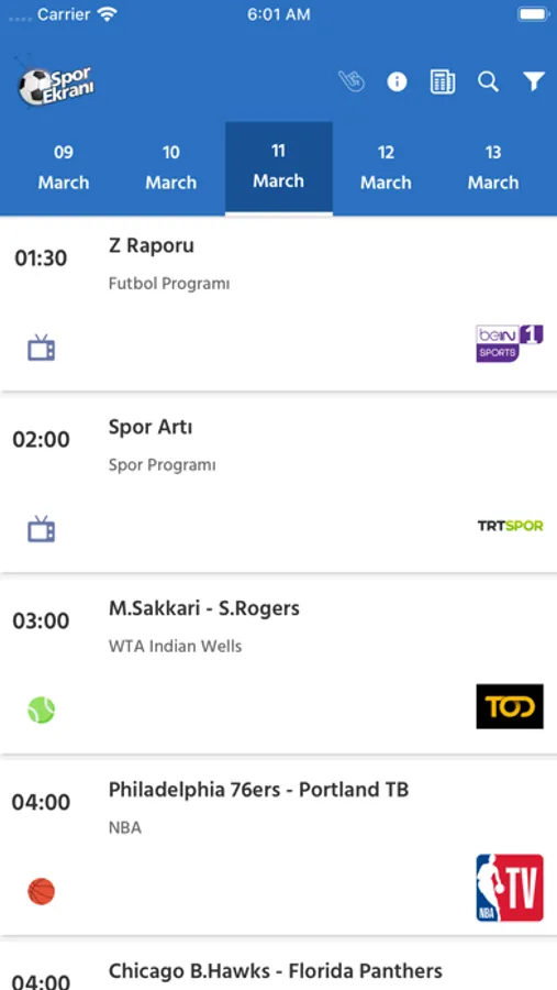 Spor Ekranı canlı spor olaylarının yayın akışını tek yerde toplayan Türkiye'nin ilk uygulamasıdır. Spor Ekranı Türkiye'de televizyonda ve internette canlı yayınlanan tüm spor karşılaşmalarını gün gün ve saat saat listeler. Ayrıca Spor Ekranı izlemek istediğiniz maçları sosyal medyada paylaşma ve takviminize kaydetme imkanı verir.