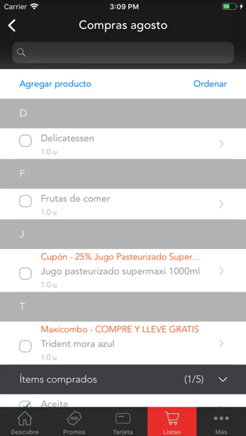 - Organice sus listas de compras por pasillos, de forma alfabética o a su gusto.